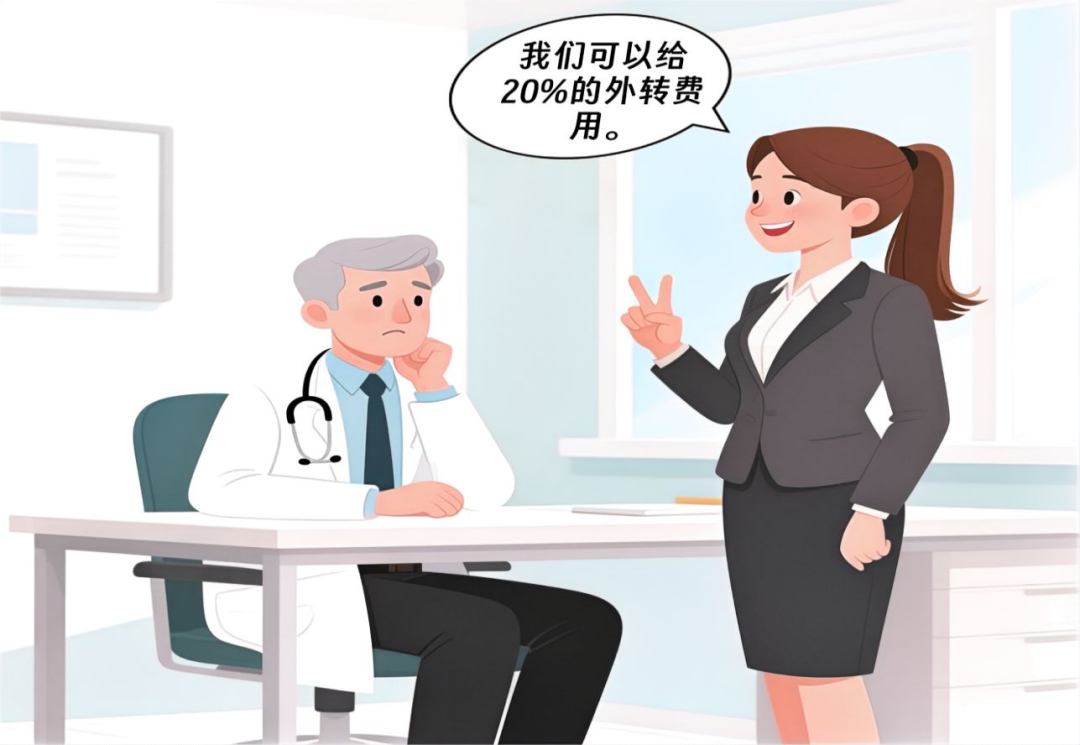 《医疗机构工作人员廉洁从业九项准则》中规定:“除因需要在医联体内正常转诊外,严禁以谋取个人利益为目的,经由网上或线下途径介绍、引导患者到指定医疗机构就诊。”极个别医务人员为了蝇头小利,无视法律法规,将本单位诊疗的病人有偿转介到其他医疗机构或第三方检验机构就医,损害患者权益,破坏正常的诊疗秩序,涉嫌违规违纪甚至违法。