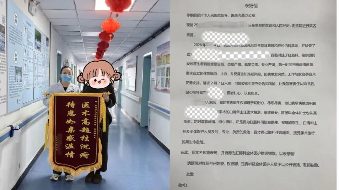 出院后,患者将一封感谢信与四面鲜艳的锦旗送到科室,这沉甸甸的谢意背后,是科室坚持党建与业务深度融合的暖心硕果,更是全体医护人员始终坚守医者初心、践行使命担当的生动注脚。一直以来,彭州市人民医院肛肠科始终坚持党建引领学科发展,引导全体医护人员亮身份、践承诺、作表率,以精湛医术守护健康,以暖心服务赢得信任。
